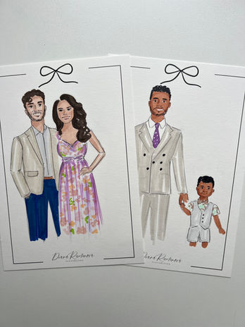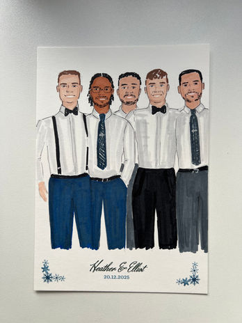 My assistant will take a quick photo, so you can enjoy the day while I draw. I work on the basis of 1 or 2 guests per illustration, but groups of 3 are also acceptable. The finished illustrations will be displayed and ready to be collected from the guests. If any remaining illustrations, they will be finished in my studio and will be posted.